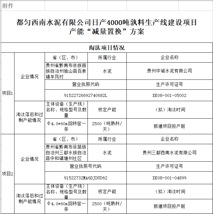 都匀西南水泥有限公司日产4000吨熟料水泥生产线建设项目产能“减量置换”方案的公示