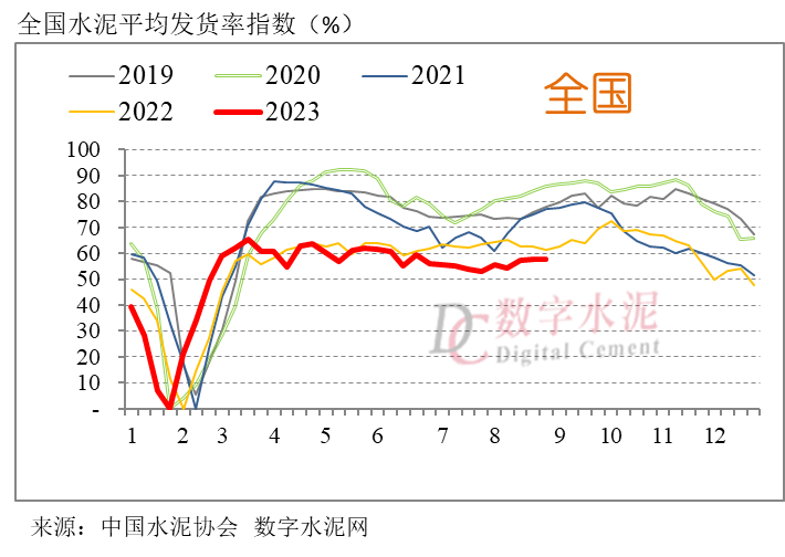 1、水泥发货率(出货率):水泥日发货量与企业水泥在产产能比值。采集样本为本地大中型企业为主,小型企业为辅。水泥发货率以区域作为参考更有价值和代表性。