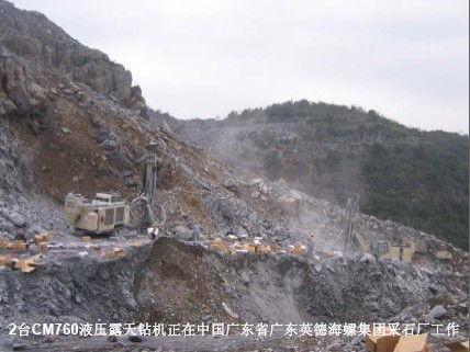 2007 年海螺水泥提出水泥熟料年产量达到 1 亿吨、跻身世界前 3 强的目标,并计划到 2010 年建成投产 31 条熟料生产线。作为如此艰巨目标的依托,此次海螺水泥购置了8台阿特拉斯•科普柯钻机设备投入到各矿山的生产工作。此次的8台设备将被用于8个公司。 扶绥海螺:CM760,弋阳海螺:CM760,石门海螺:CM760,湖南海螺:CM760,荻港海螺:DM30,双峰海螺:DM30, 兴安海螺:DM30,池州海螺:DM45。CM760年产量约为250万吨,DM30约420万吨,DM45约600万吨。