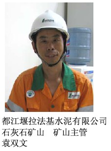 “对于大型矿山采矿作业,设备是最根本的保证。所有的工作量不可能都由人工完成,如果设备没有保证,其他工作都是空谈。就品牌而言,阿特拉斯·科普柯是凿岩设备中的第一品牌;就使用情况而言,阿特拉斯·科普柯ROC L6 潜孔钻机非常适合都江堰拉法基水泥石灰石矿山的岩层工况。因此,我们从最初的了解逐步走向了最终的选择。”提到对阿特拉斯·科普柯ROC L6 钻机的认识,都江堰拉法基水泥有限公司石灰石矿山矿山主管袁双文先生感慨的说。