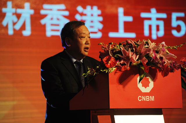 非常高兴参加今天的庆典。在这里我代表国务院国资委,对中国建材股份有限公司香港上市五年来取得的优异业绩表示衷心的祝贺!