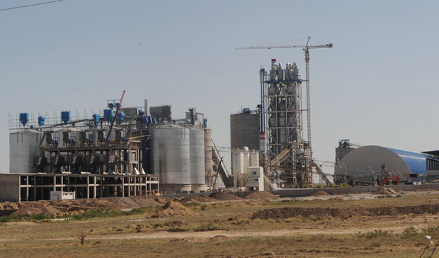 天山在察布查尔县伊南工业园一墙之隔的新疆金龙水泥有…