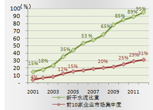 到2015年,前10家水泥企业产业集中度达到35%,形成3-4家熟料产能1亿吨以上,矿山、骨料、商品混凝土、水泥基材料制品等产业链完整,核心竞争力和国际影响力强的建材企业集团。